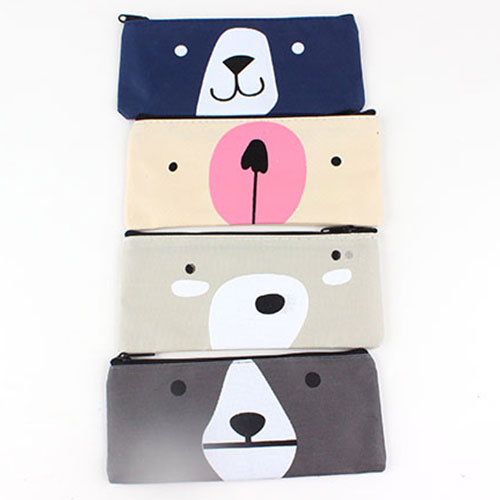 귀여운 동물 얼굴이 프린트 되어 있는 미니 필통 파우치.